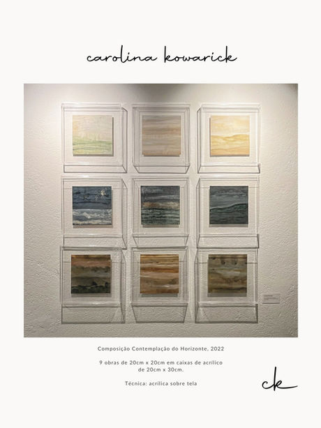 Contemplação do Horizonte é uma série que convida ao olhar demorado e à pausa. Inspirada na linha sutil que separa céu e mar — ou terra e infinito —, cada obra explora transições de cor e textura que evocam serenidade e profundidade. Pintadas em camadas suaves, essas composições buscam transmitir equilíbrio, imensidão e a sensação de estar diante de algo que se estende além do que os olhos podem alcançar.